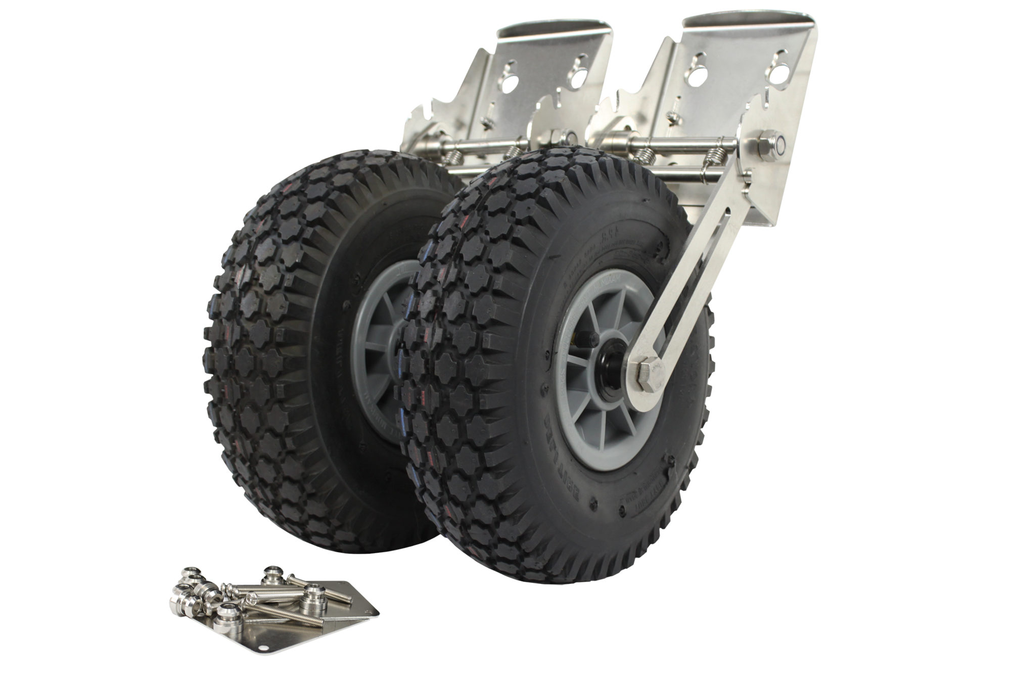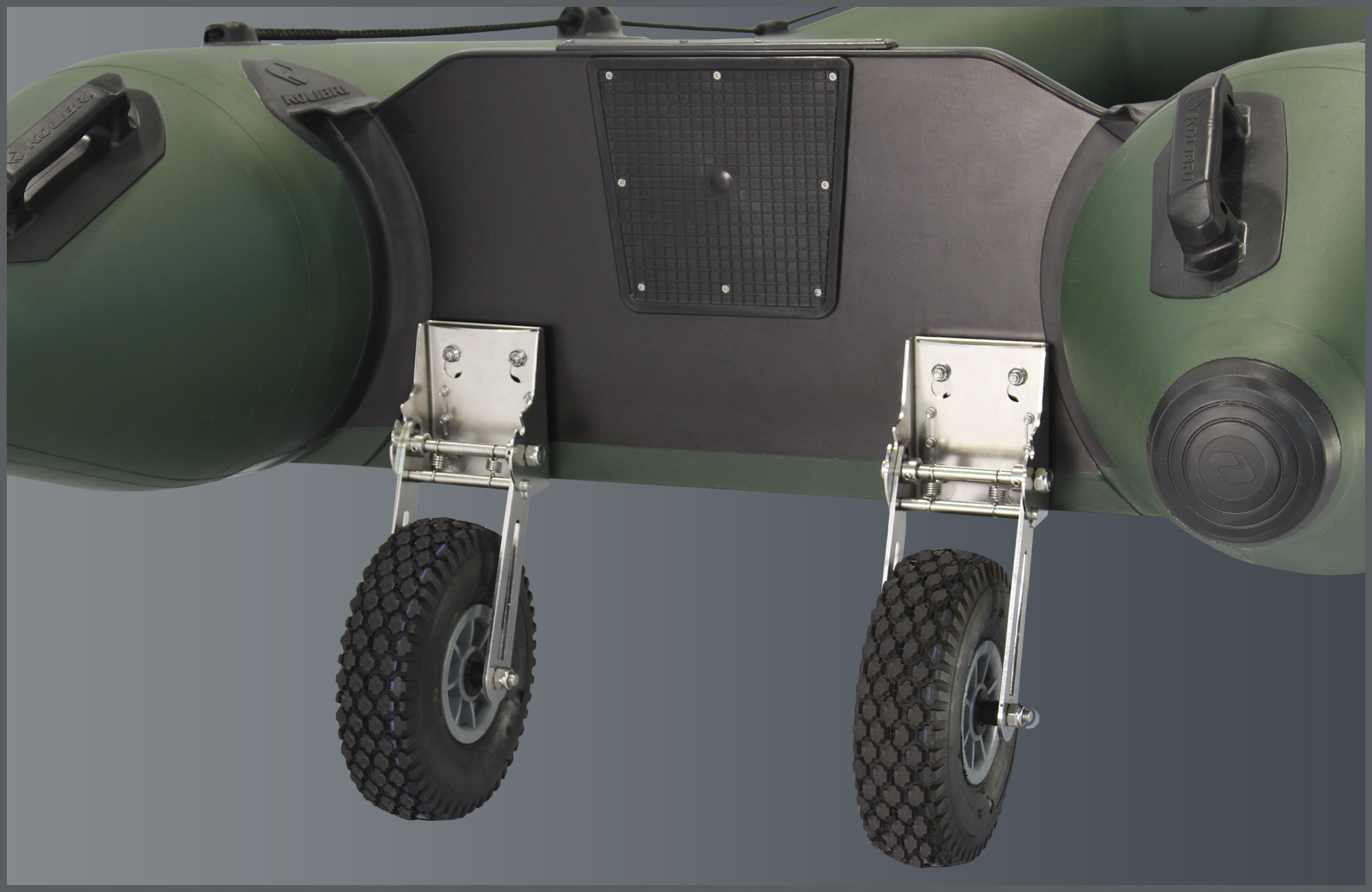 Колеса транцеві з нержавіючої сталі розроблені для надувних моторних човнів, шлюпок з жорстким корпусом, що дозволяє легко транспортувати їх по суші. Надувна гумова шина гарантує чудове зчеплення та амортизацію, забезпечуючи плавний рух по піску, гравію тощо.