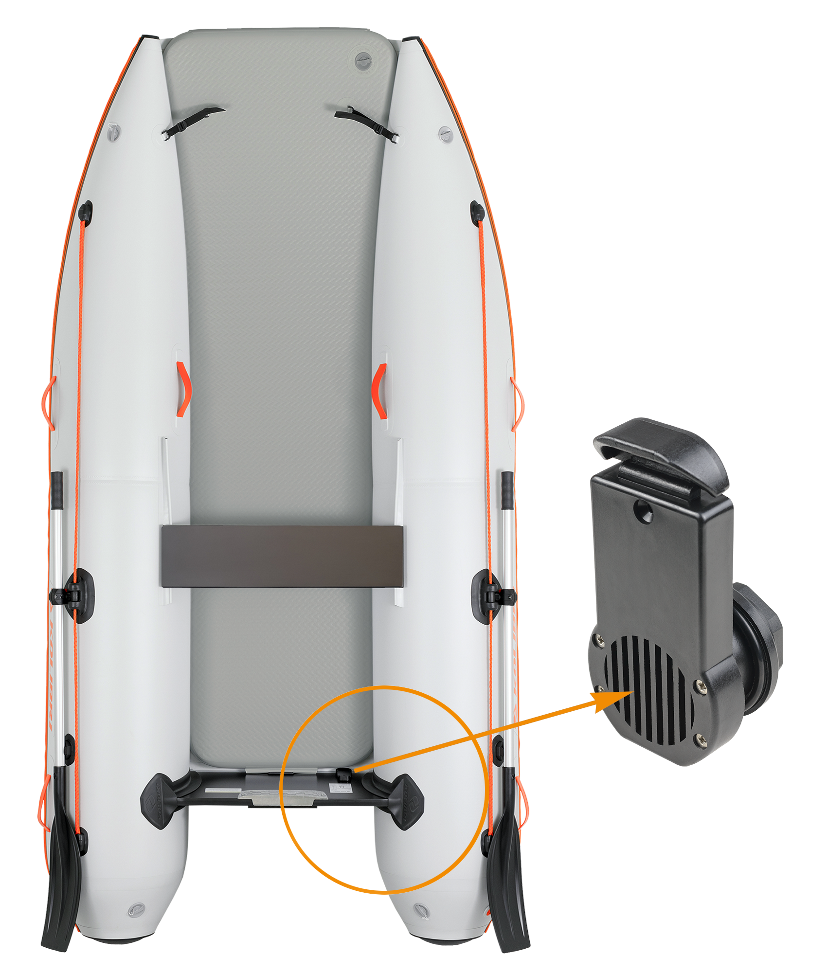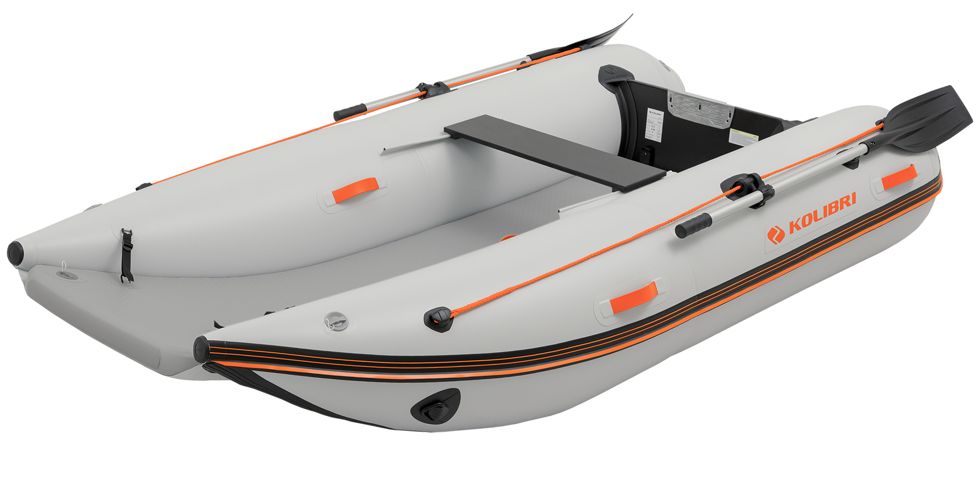 Надувний човен–катамаран “КОЛІБРІ” КМ-300СМ – це найменший моторний човен зі стаціонарним транцем в модельному ряді СБК “КОЛІБРІ” серії “SEA CAT”. Інноваційний дизайн відкритого носа човна спрощує посадку пасажирів і вантажу з берега та забезпечує легкий та комфортний вхід і вихід з води.